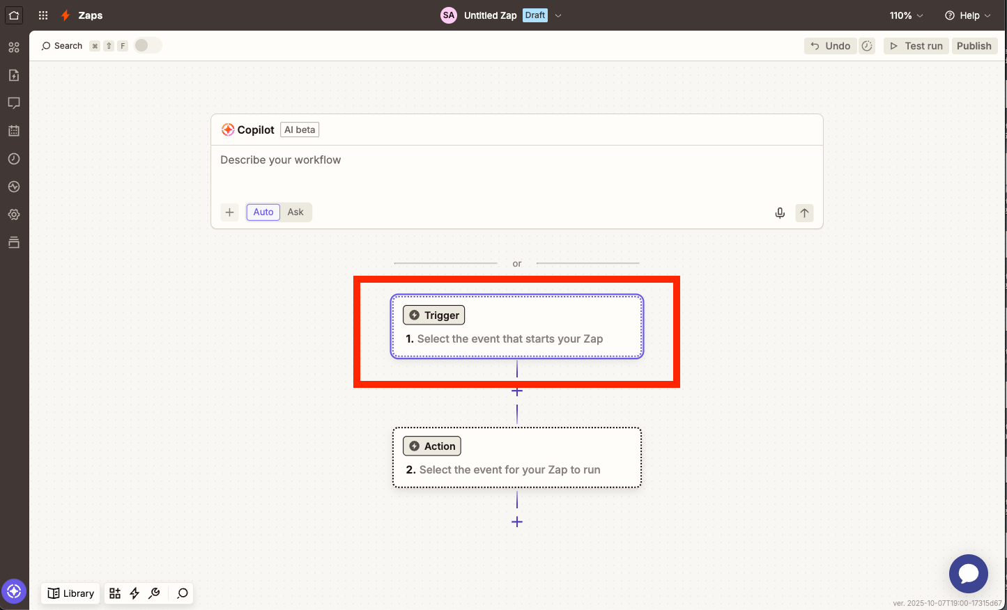 Once you land on the new zap canvas, select the first "Trigger".