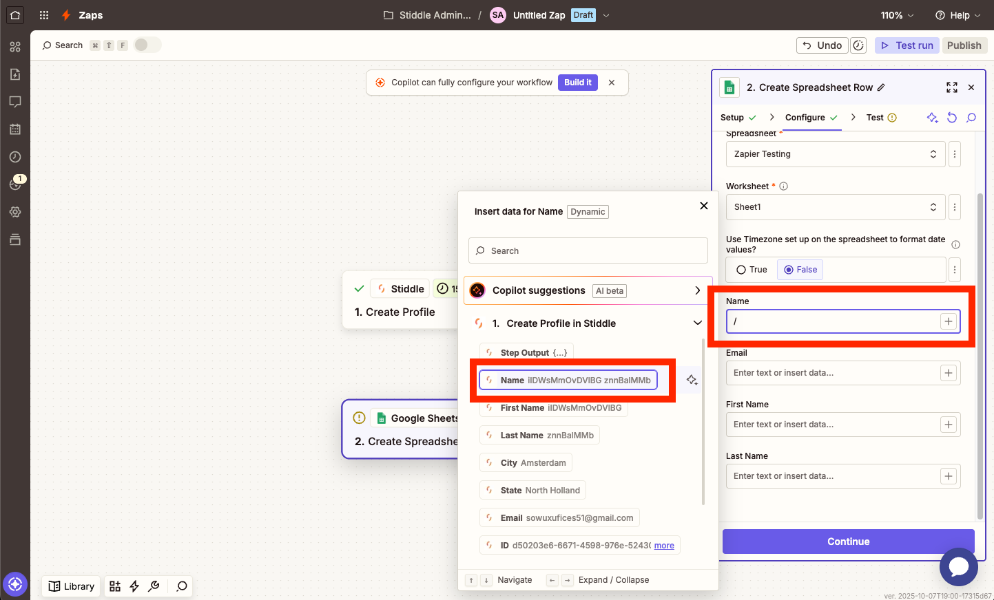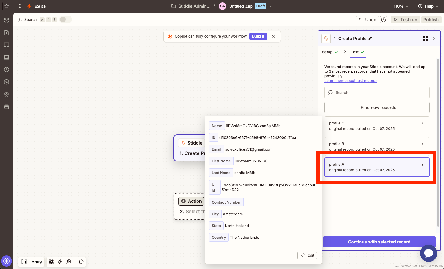 You will see a list of a few live profiles from your Stiddle workspace. This is a clear indication that data is now flowing from Stiddle to Zapier!