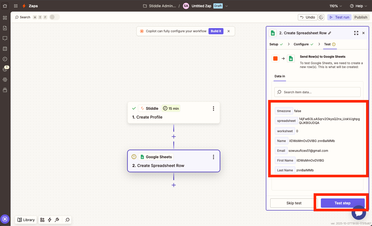 Once finished mapping, select "Continue". Verify the data is flowing and mapped correctly, then select "Test Step".