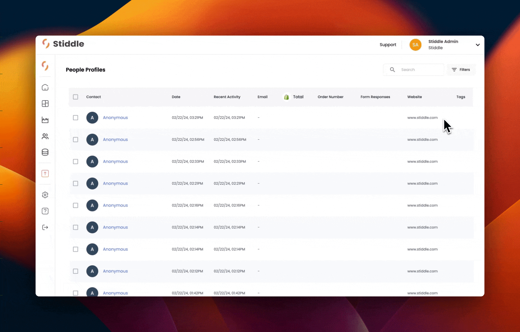 From here, you’ll see a complete overview of every website visitor and customer since the time you installed the Stiddle Pixel.